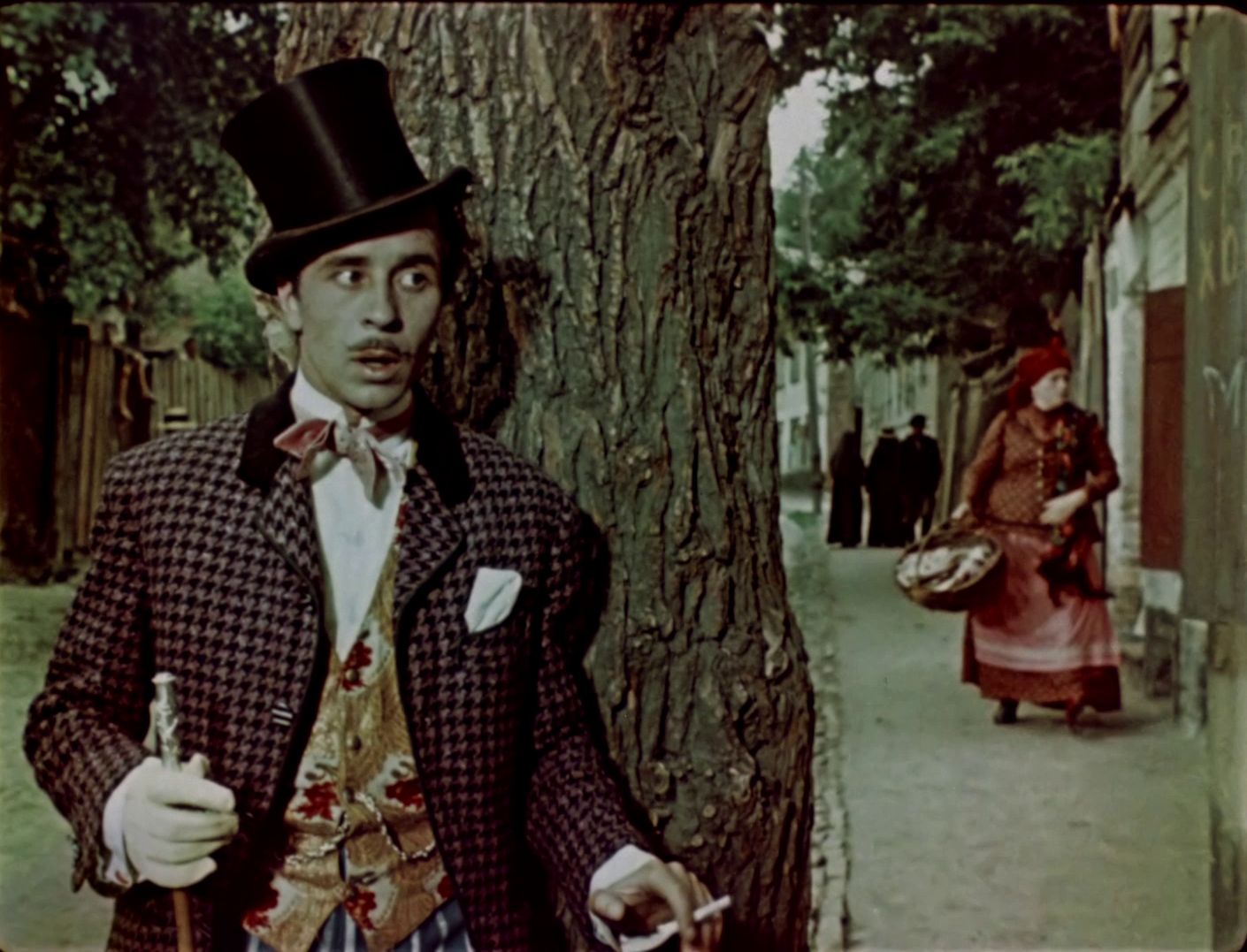 In the 1960s, Holokhvostyi’s antics probably seemed like a parody of the subculture of the “stylish youth” of the Thaw period. Today, it is clear that this satirical take from the writers of the film (and from the original author of the play, Mykhailo Starytskyi) depicted the “grassroots Russification” of Ukrainian cityfolk. The movie’s cast consists of luminaries of the Ukrainian theater. They shine side by side with unexpected episodic actors, like Kostiantyn Yershov, the quiet thuggish friend of Hoholkhvostyi, who later created the films Viy (1967) and Hrachi (1982).